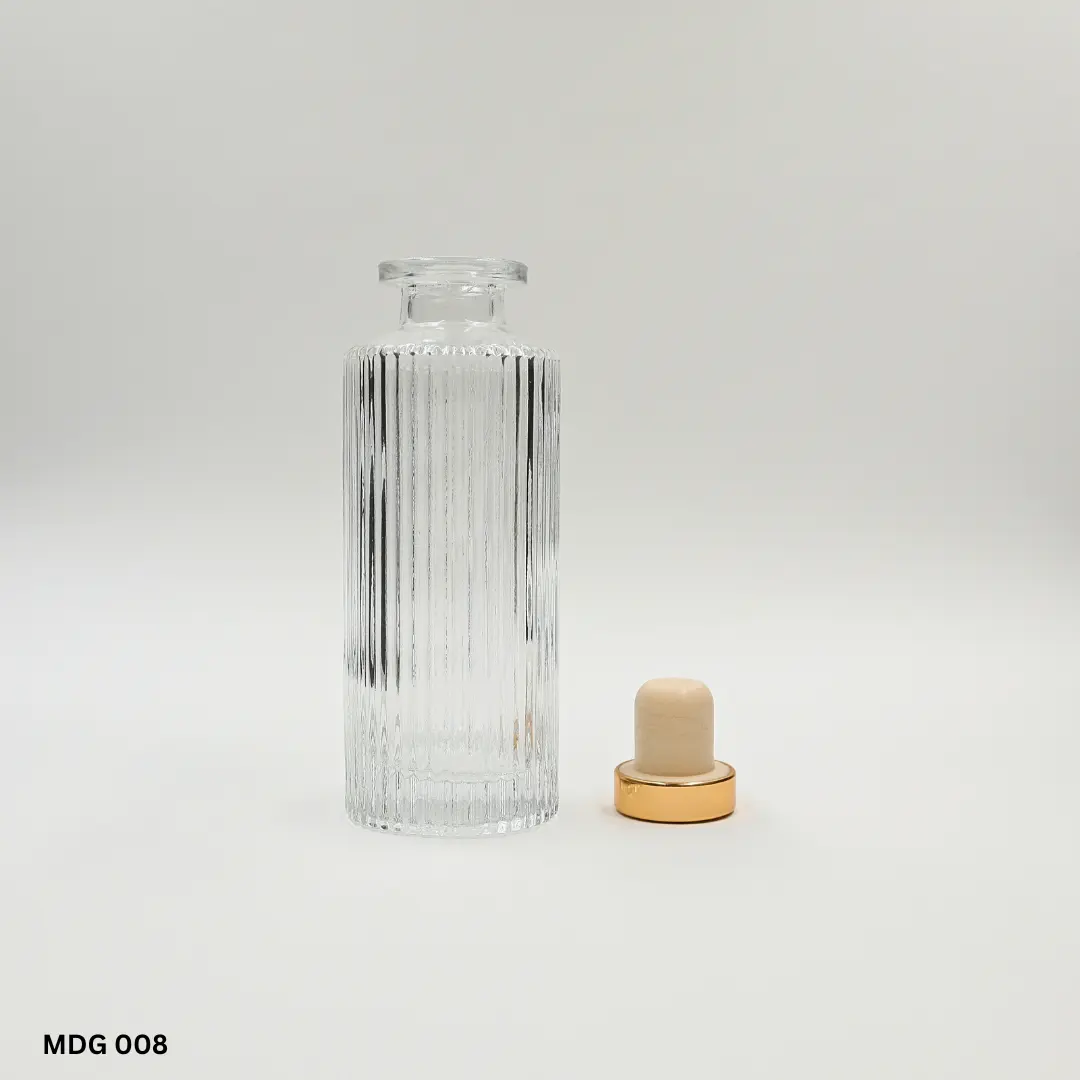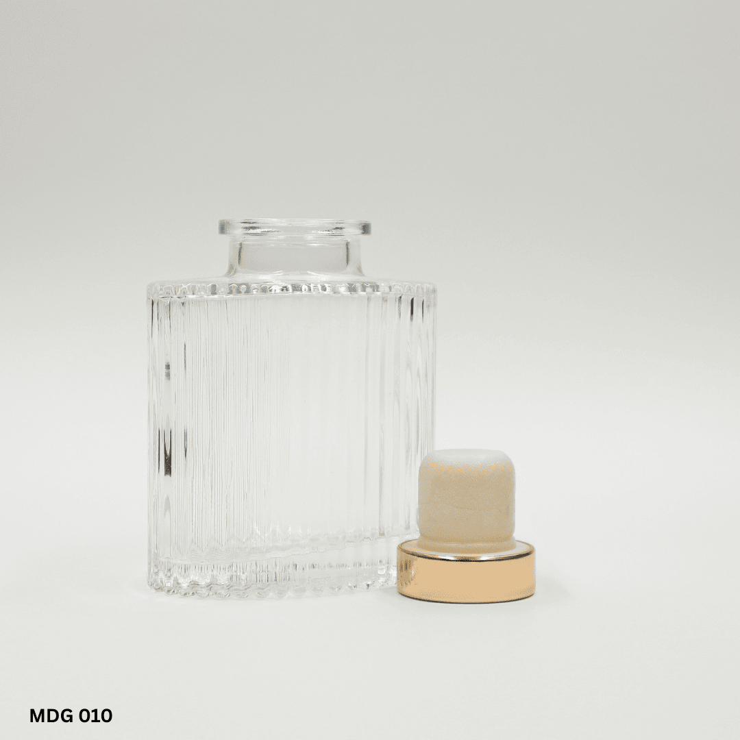 Fluted diffuser bottles in cylindrical and oval shape profiles with elegant vertical lines. Reeds and cap closure options are available as part of the complete pack.