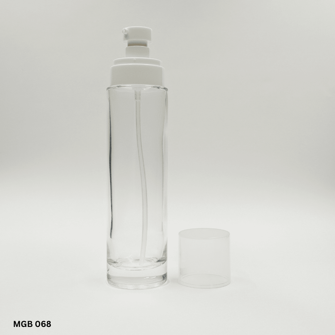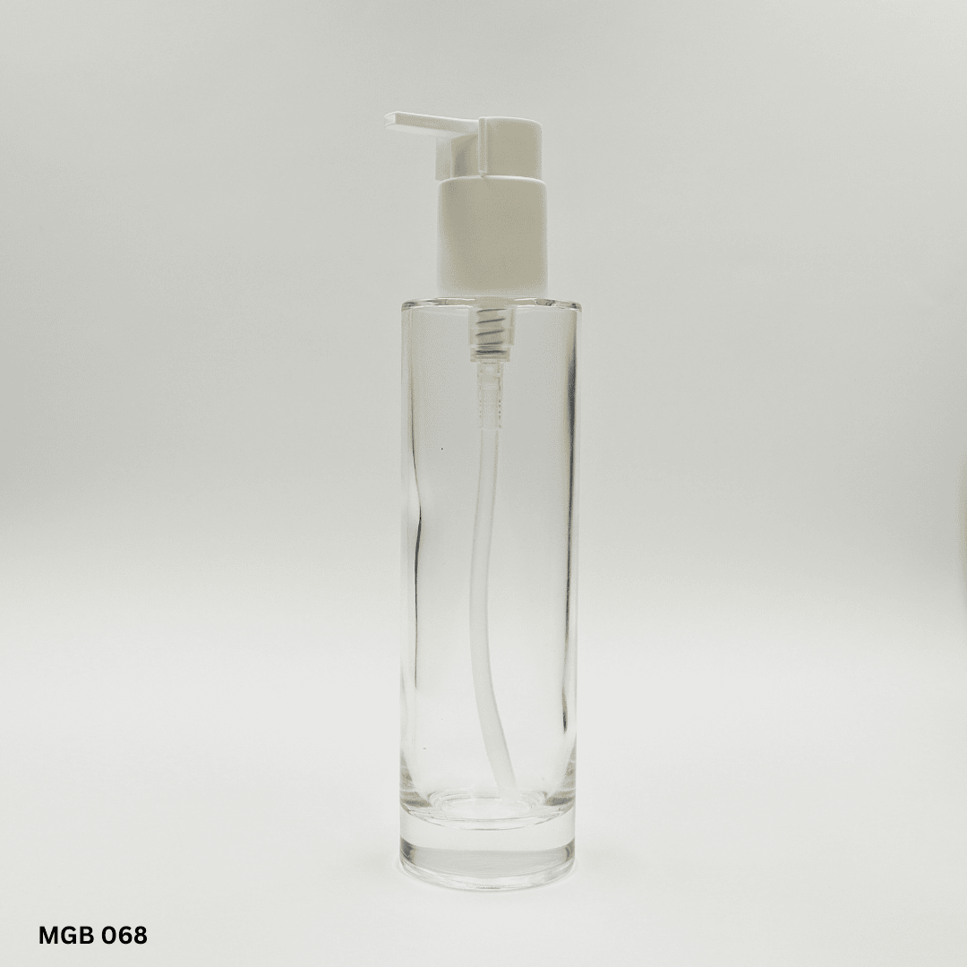 Tall cylindrical glass bottle. Can be matched with a wide range of pumps and closures.