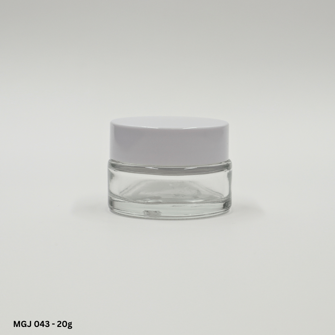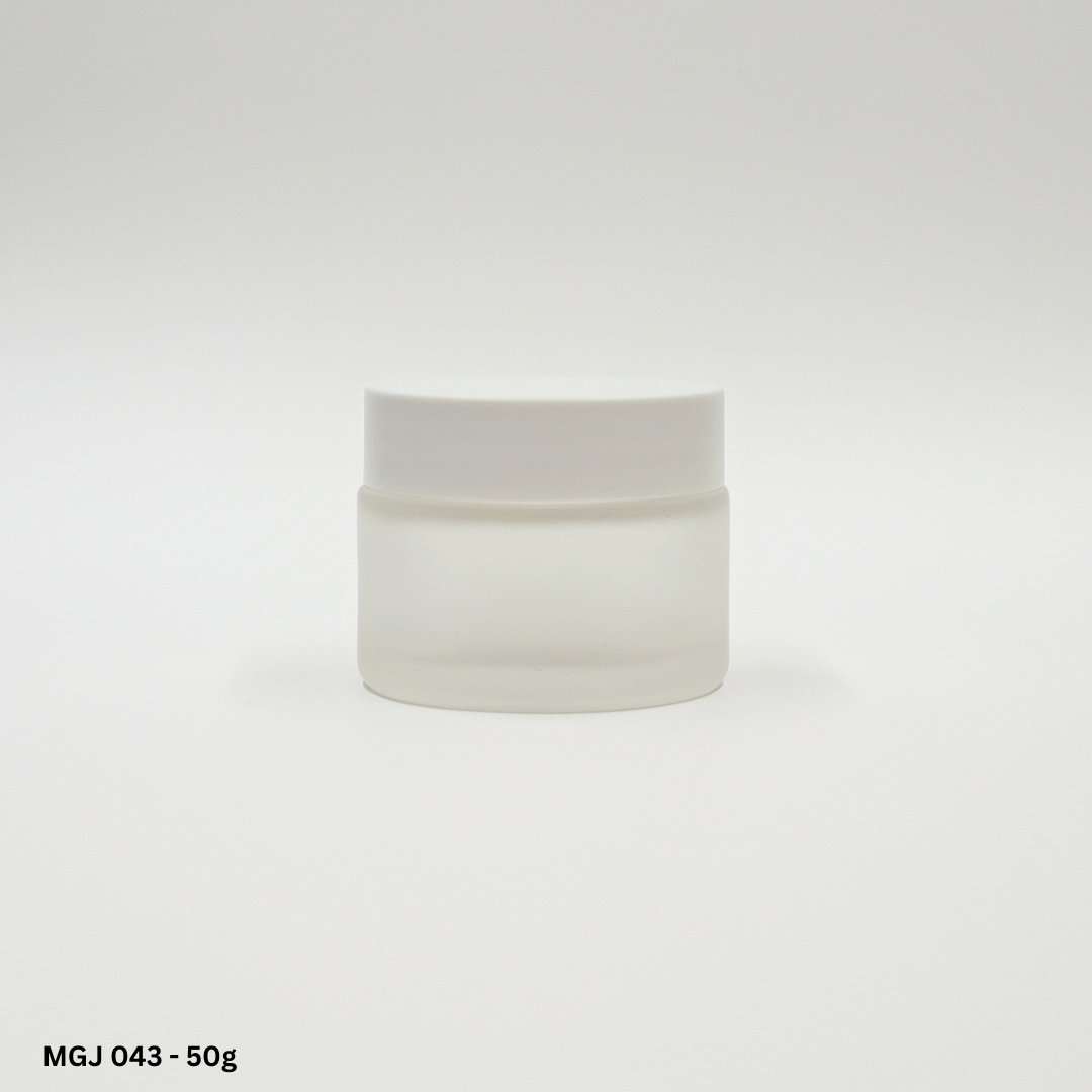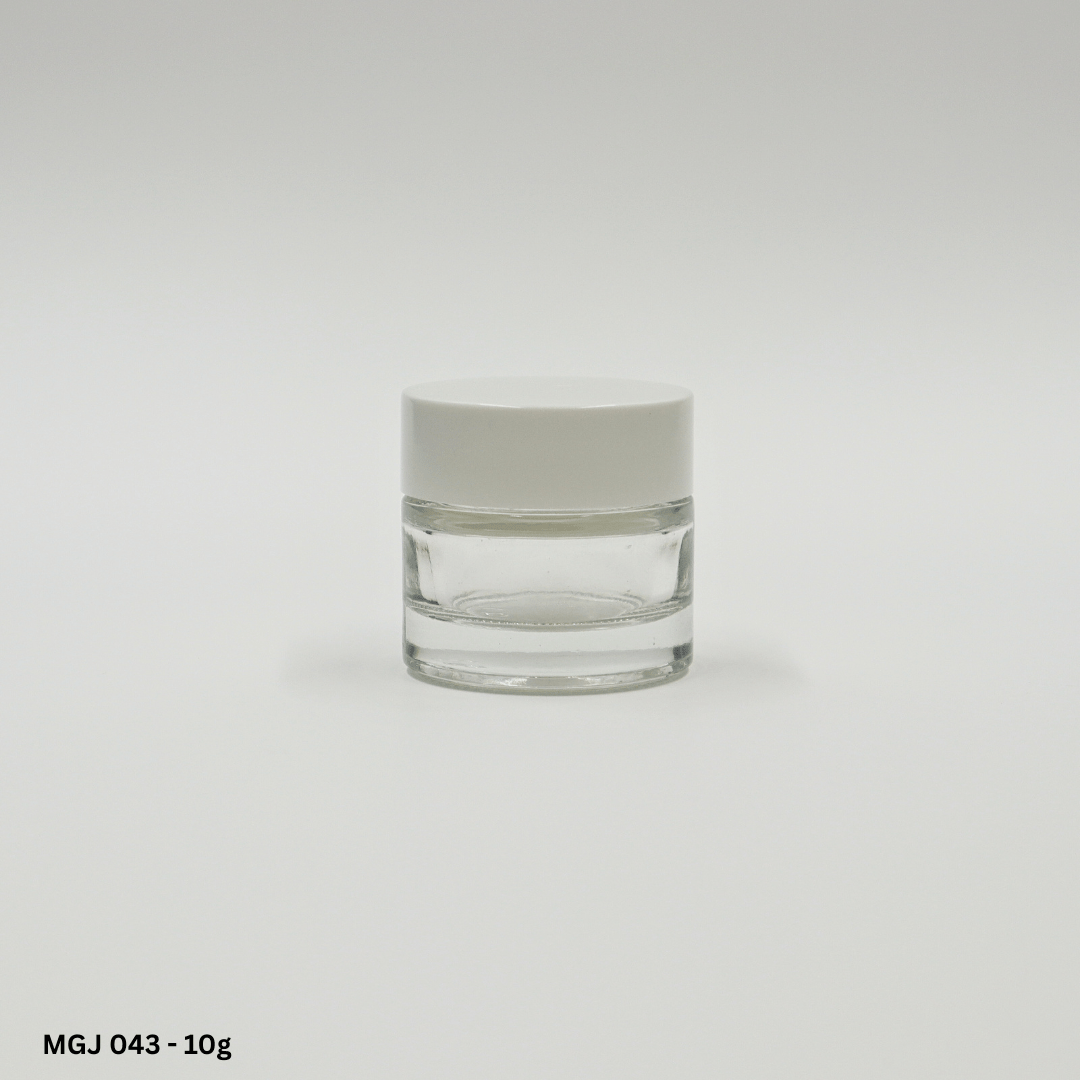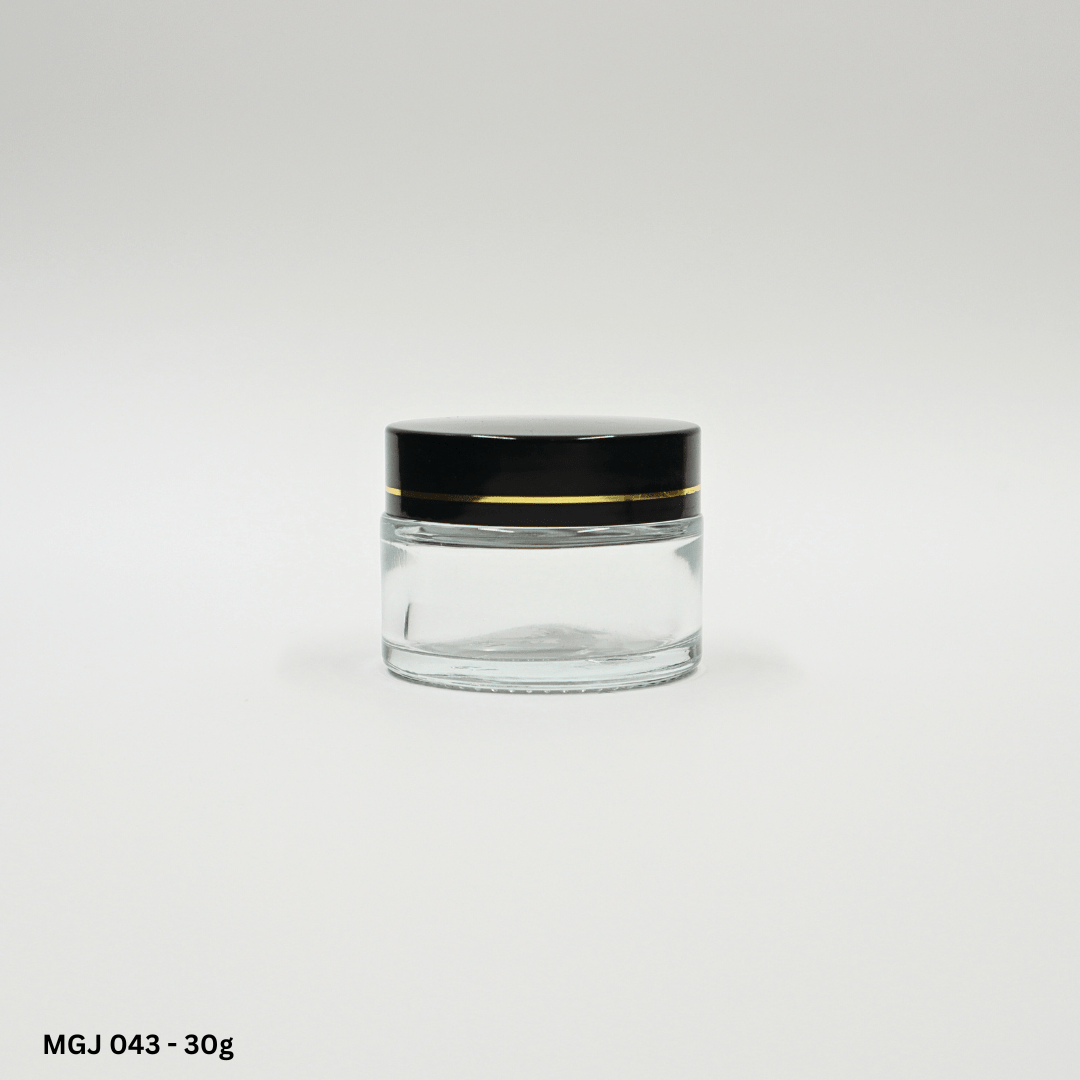 Premium heavyweight moulded glass jar range, luxury aluminium sheathed caps with PP inner cap and shive ideal for formulations with SPFs or fragranced bulks.